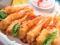 Гамберо Фритто тигровые креветки в панировке с соусом Капри