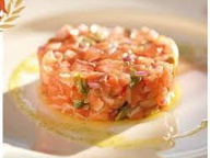 Тартар из лосося с авокадо, скостини в медово-горчичном соусе