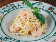 Спагетти с креветками и цукини